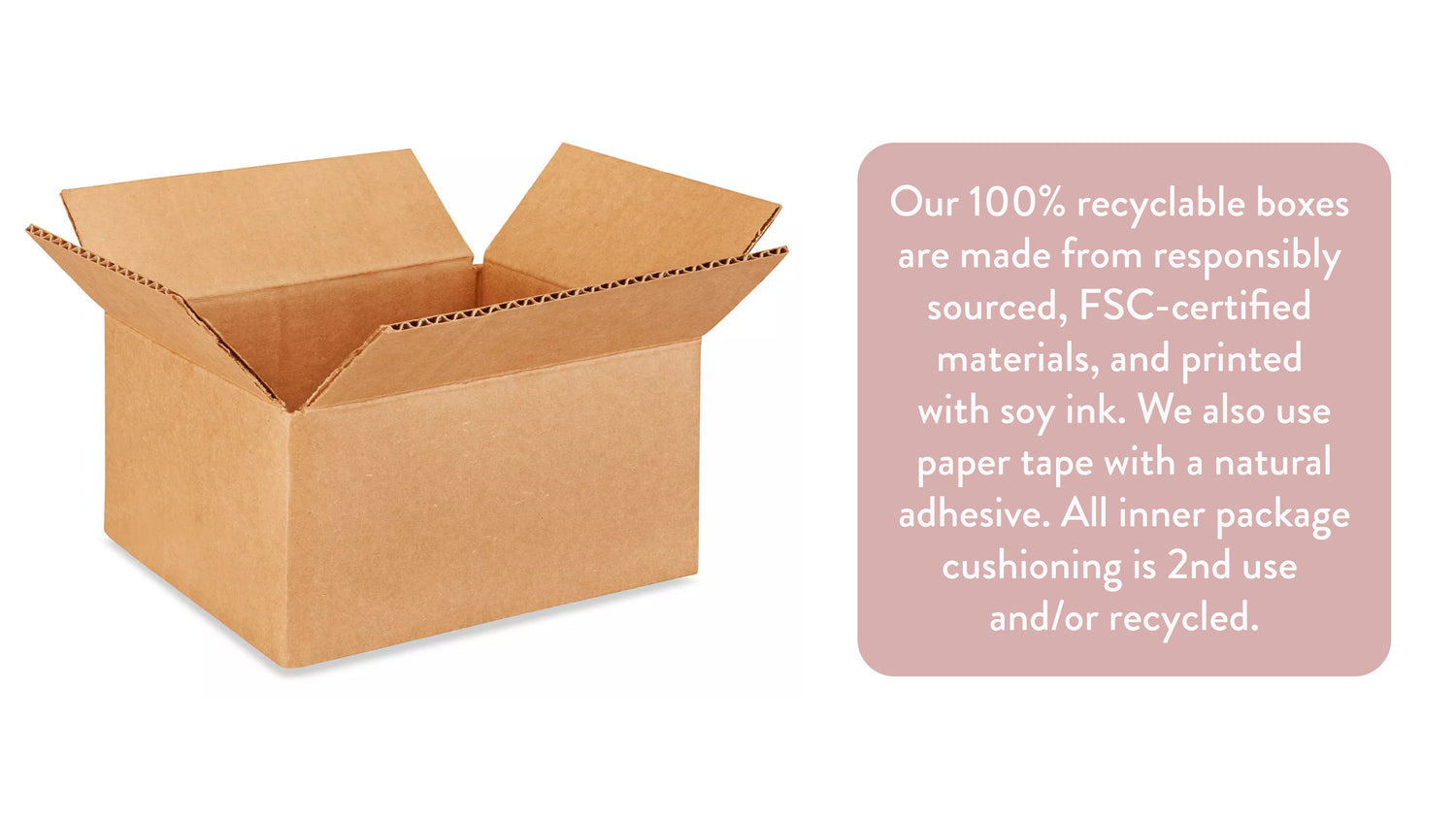- Products are made and assembled in the US to reduce the carbon footprint.
